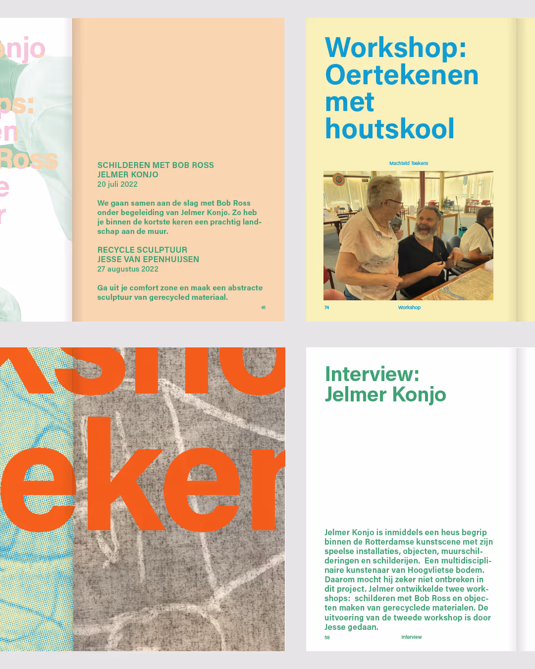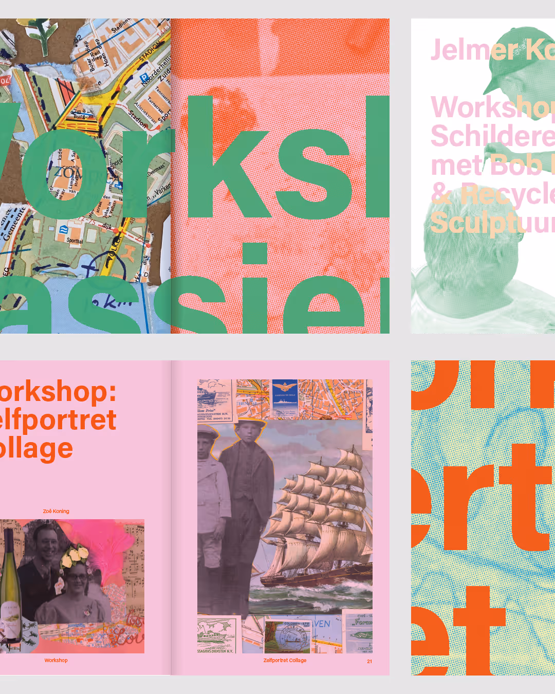 Publication for Zoë Venus Koning, documenting her collaborative project ‘Lang Leve Hoogvliet!’ which centered around different workshops with local artists and residents of the Hoogvliet care facility. The design is based on the notion of collaboration; overlapping shapes creating something new as they come together.