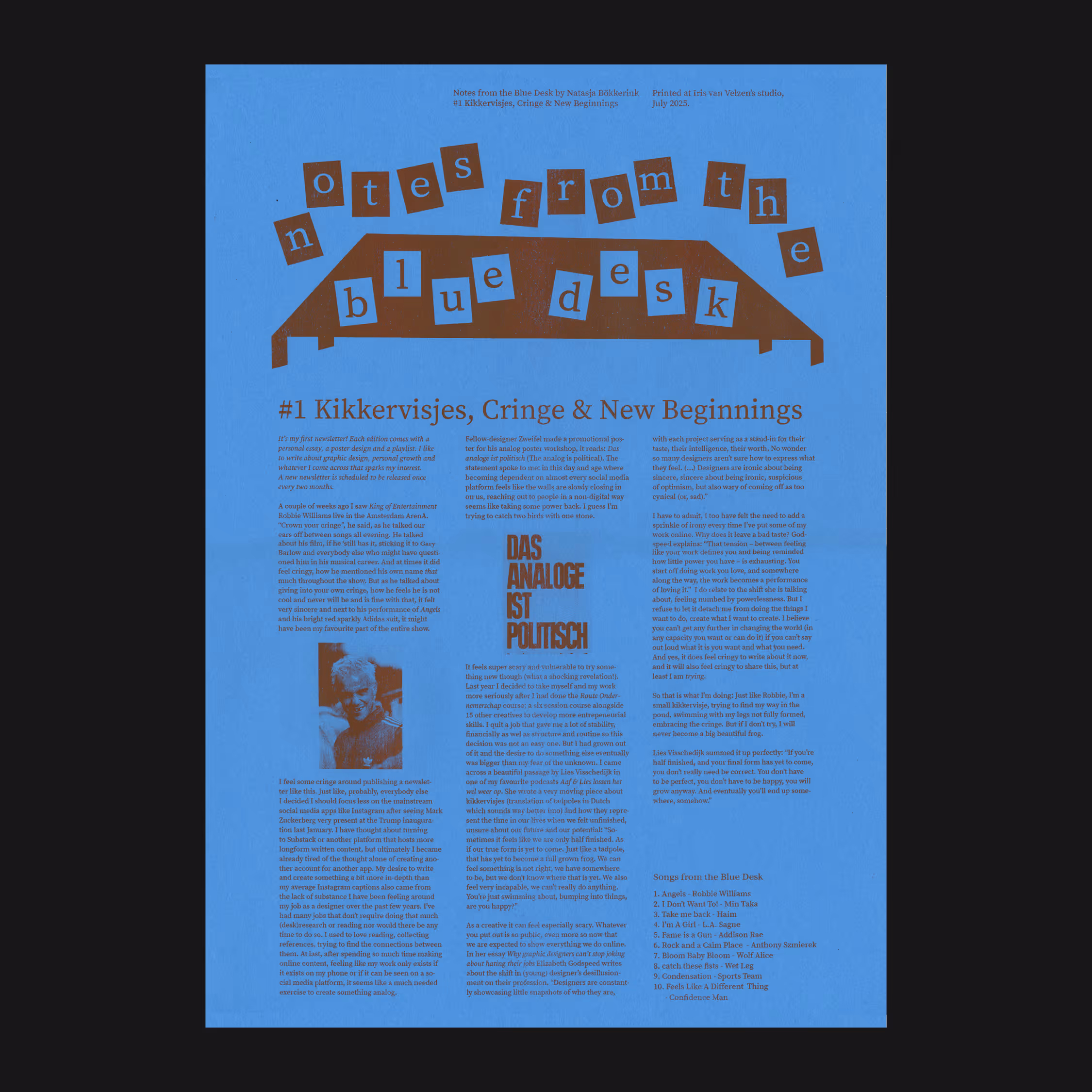 Each edition comes with a personal essay, a poster design and a playlist. Natasja likes to write about graphic design, personal growth and whatever she comes across that sparks her interest. A new newsletter comes out every three months.