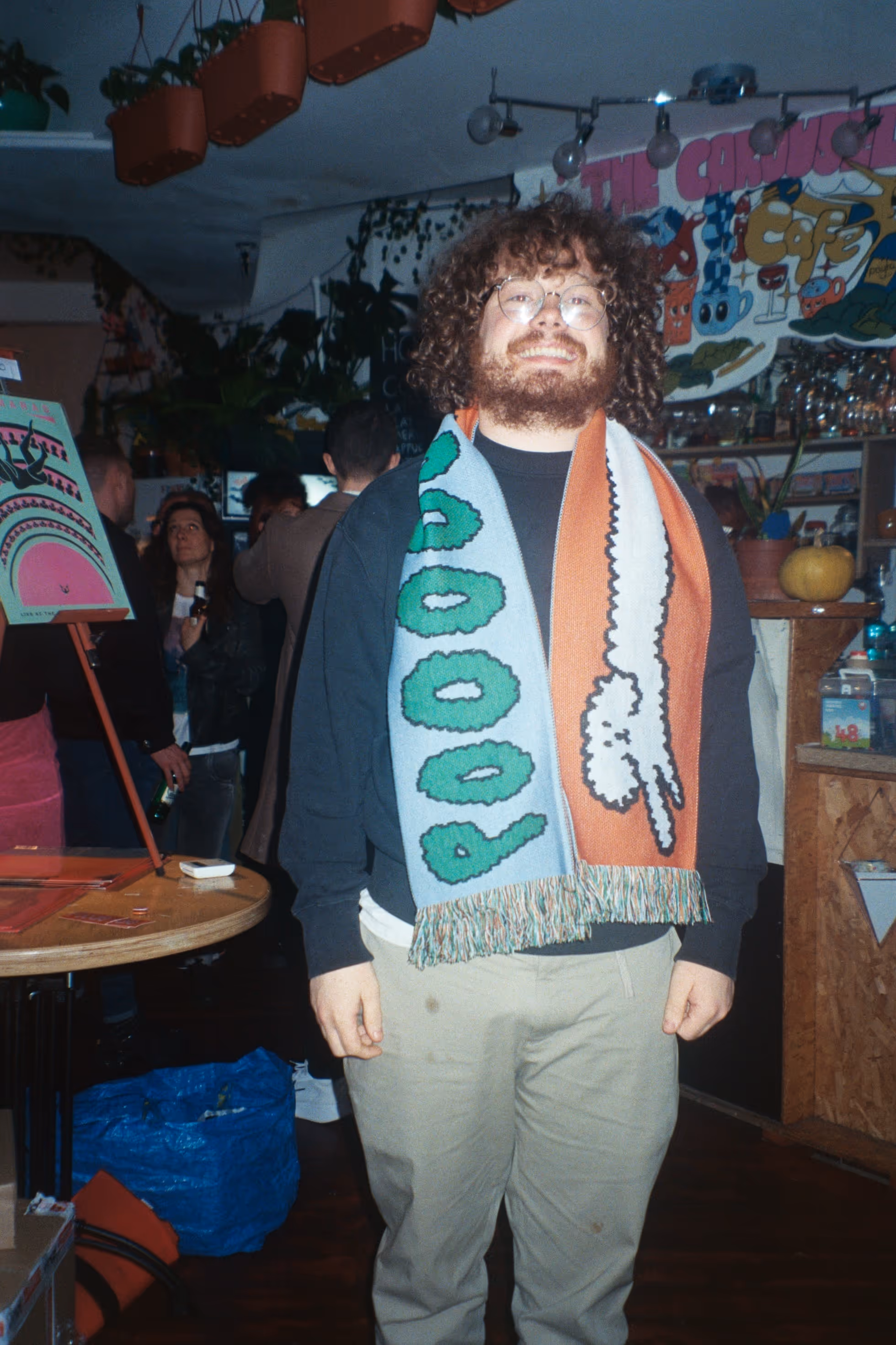 Merch for Poodle, made in collaboration with Nelleke Hogendoorn. Double knit scarf using 5 colours of thread, playing into Poodle’s quirky and colourful identity.